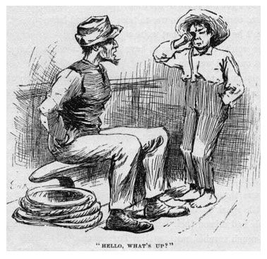 "Yes," he says, kind of pretty-well-satisfied like. "I'm the captain and the owner and the mate and the pilot and watchman and head deck-hand; and sometimes I'm the freight and passengers. I ain't as rich as old Jim Hornback, and I can't be so blame' generous and good to Tom, Dick, and Harry as what he is, and slam around money the way he does; but I've told him a many a time 't I wouldn't trade places with him; for, says I, a sailor's life's the life for me, and I'm derned if I'D live two mile out o' town, where there ain't nothing ever goin' on, not for all his spondulicks and as much more on top of it. Says I—"
