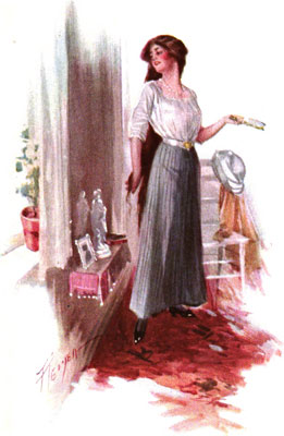 On went her old brown jacket; on went her old brown hat. With a whirl of skirts and with the brilliant sparkle still in her eyes, she fluttered out the door and down the stairs to the street.