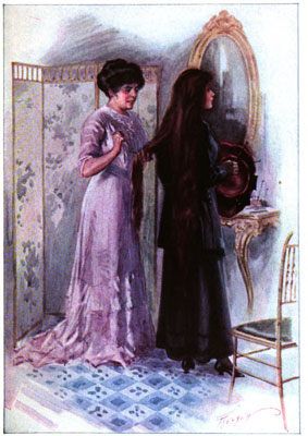 Suddenly she whirled from the window and stood before the glass. Her eyes were shining brilliantly, but her face had lost its color within twenty seconds. Rapidly she pulled down her hair and let it fall to its full length.